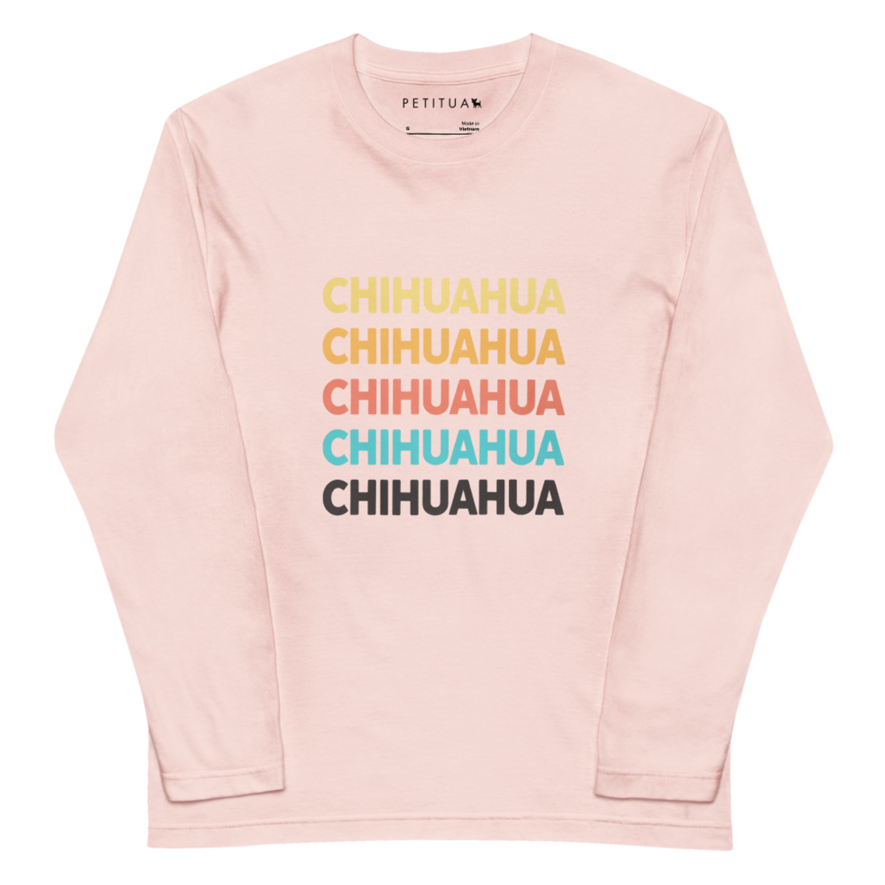 鮮やかなカラーの「CHIHUAHUA」の文字が目を引き、元気な印象を与えてくれます。