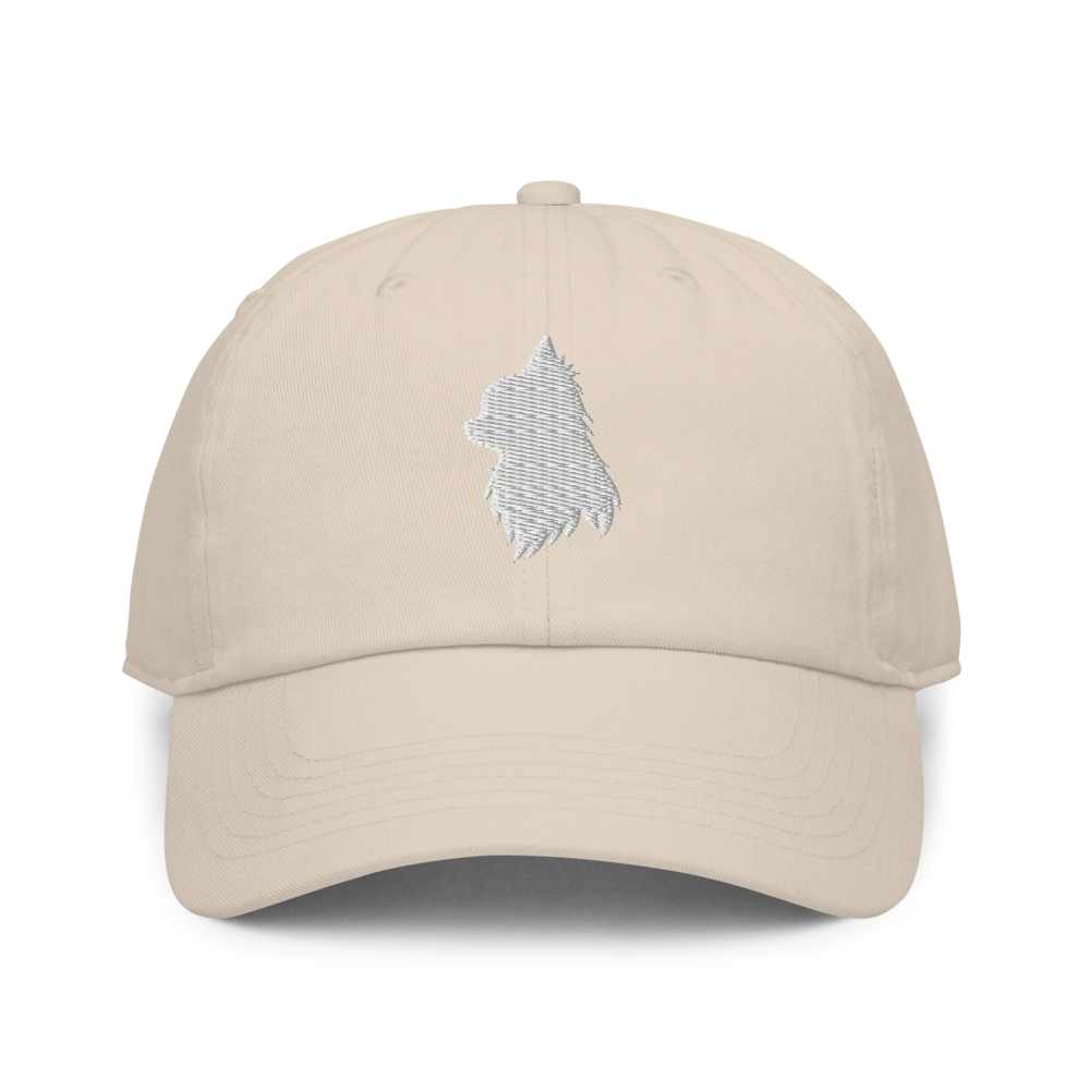凛々しいロングコートチワワの横顔の刺繍入りキャップ。